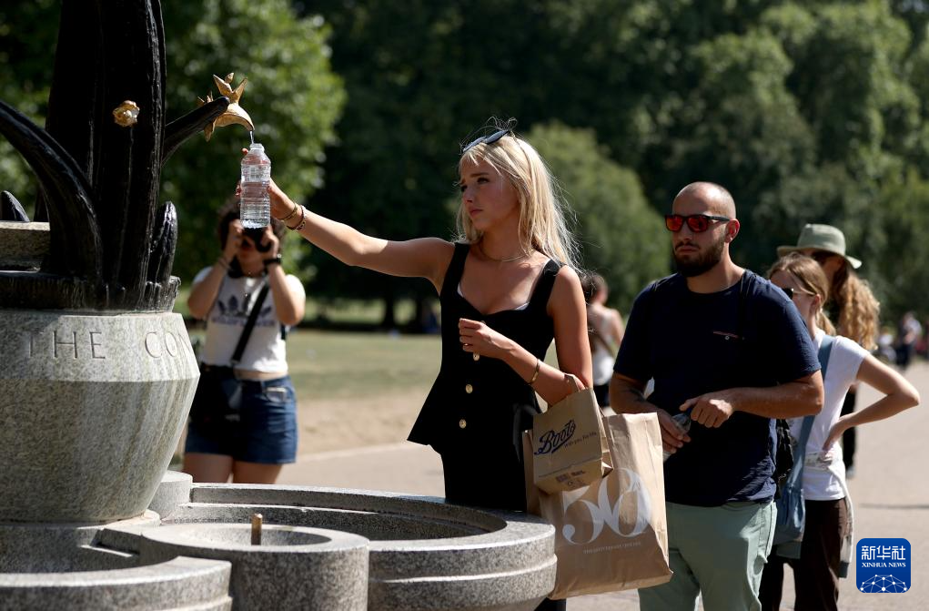 8月12日,一名男子在英国伦敦绿园饮水处取水。