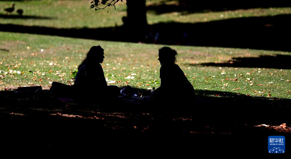 8月12日,两名女子在英国伦敦圣詹姆斯公园休闲。