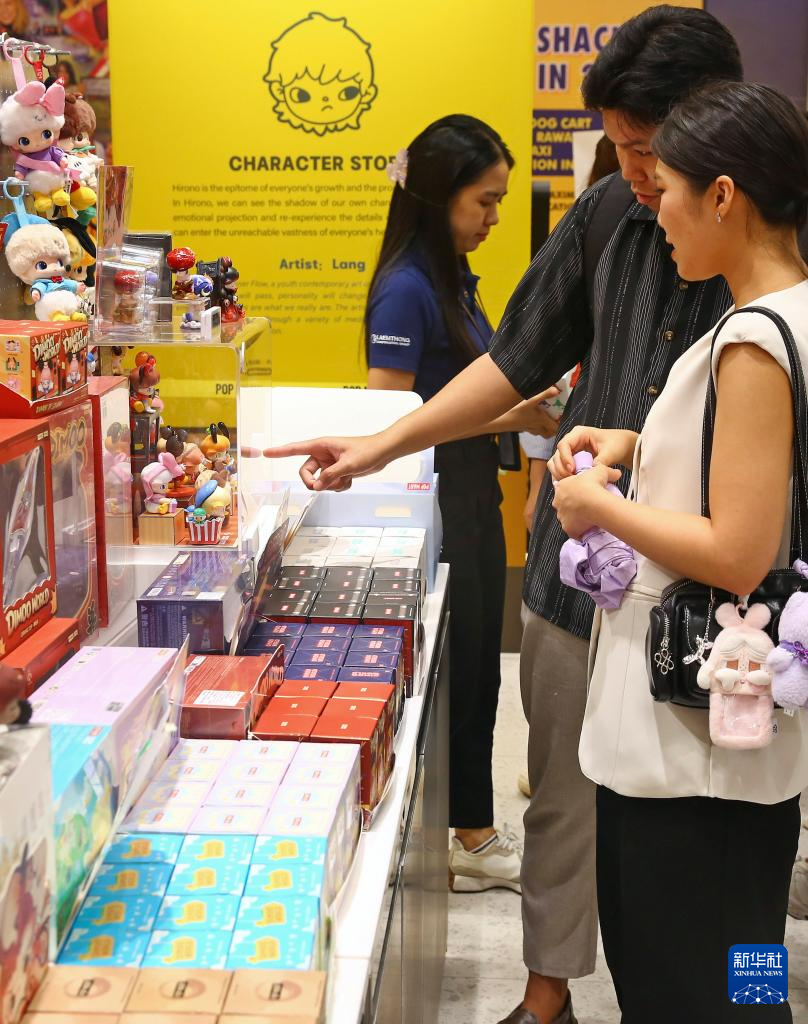 5月19日,顾客在泰国曼谷尚泰世界购物中心的泡泡玛特门店选购商品。