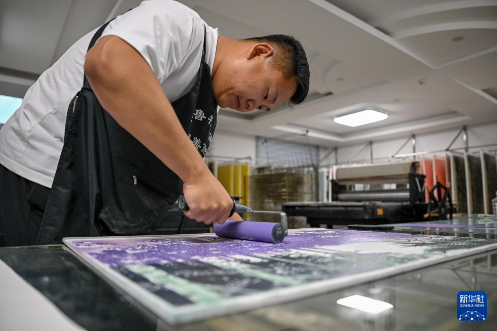 8月10日,在内蒙古扎鲁特旗版画院,青年画家石芳宇在创作版画。