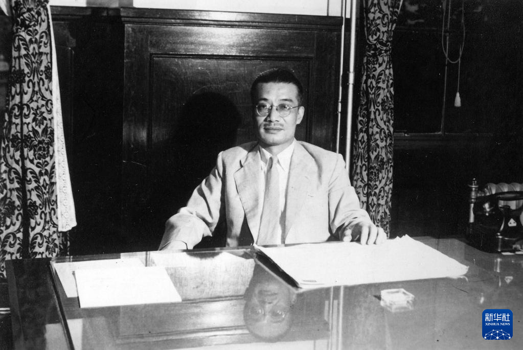 东京审判时期,梅汝璈在办公室留影(资料照片)。