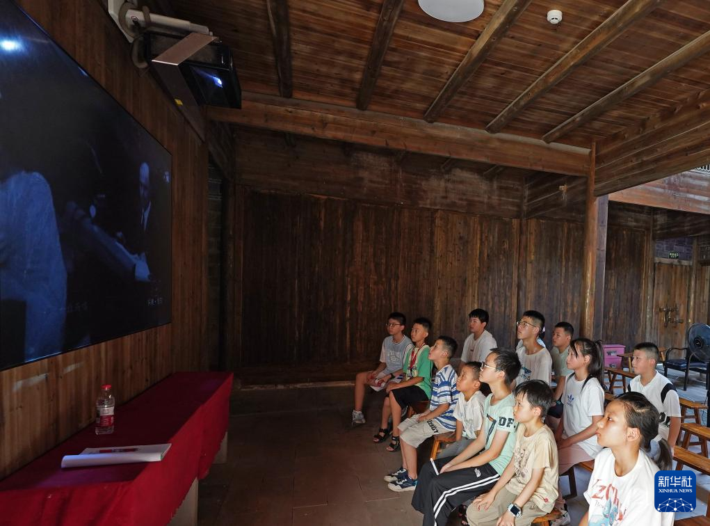2025年8月1日,孩子们在梅汝璈故居观看东京审判纪录片。