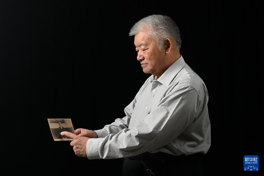 2025年8月8日,梅小璈端详父亲梅汝璈的照片。