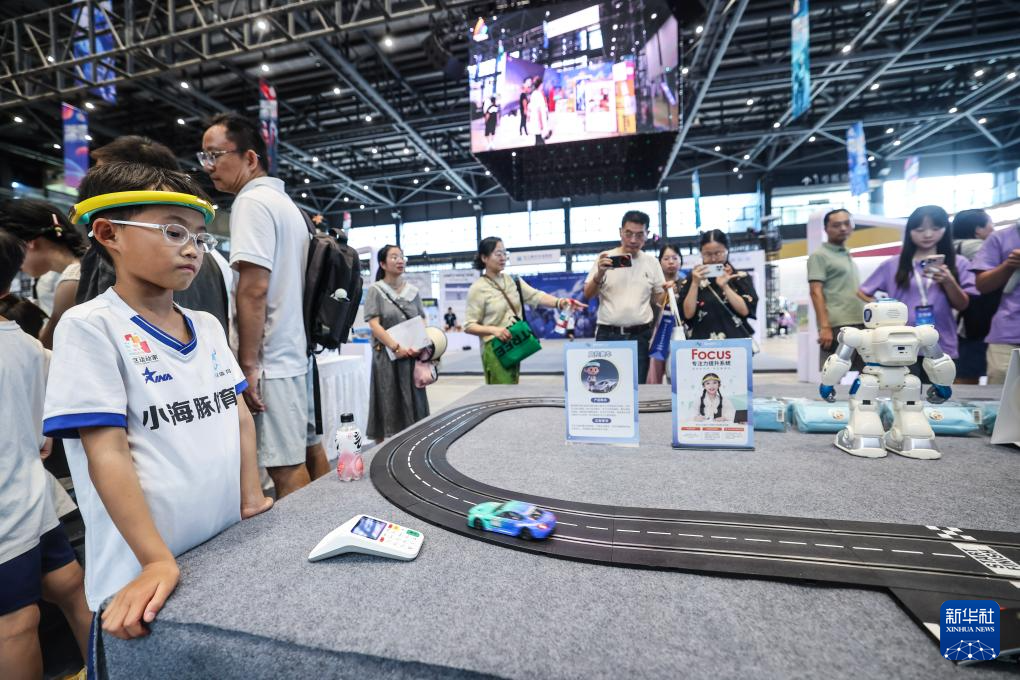 8月17日,小朋友在青少年科技嘉年华上体验“脑控万物”技术