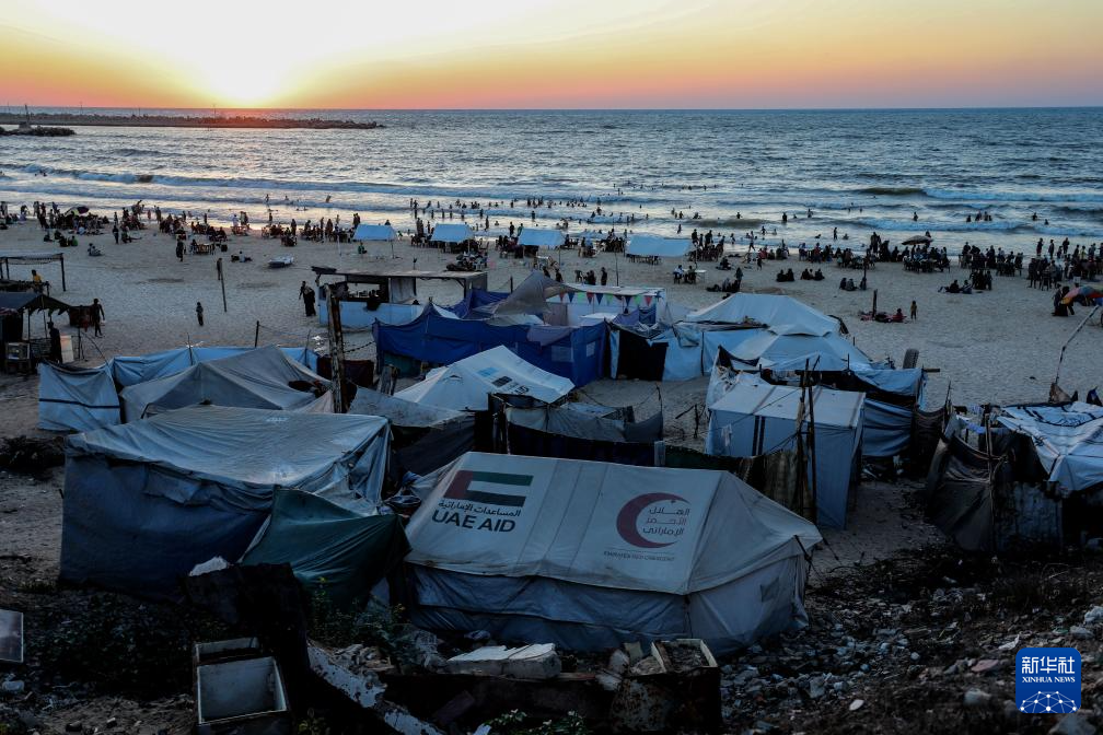 这是8月18日在加沙城拍摄的流离失所的巴勒斯坦人居住的帐篷。