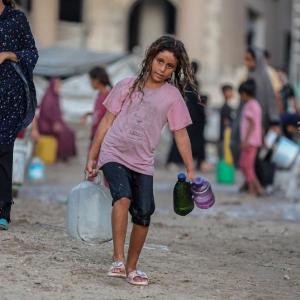 8月18日,巴勒斯坦儿童在加沙城取水。