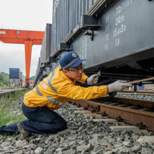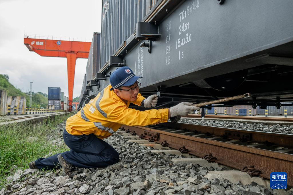 8月19日,工作人员在贵阳国际陆港都拉营站对贵州首趟多式联运“一单制”班列进行开行前检查。