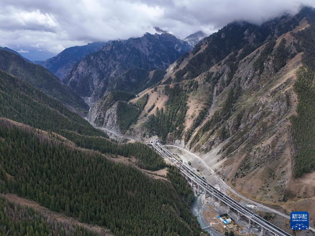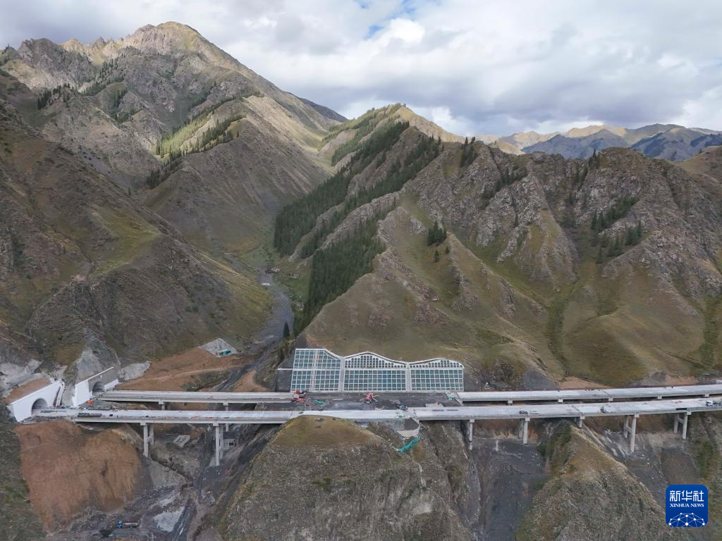 8月19日拍摄的新疆乌尉高速公路前峡1号隧道北端及其附近路段(无人机照片)。