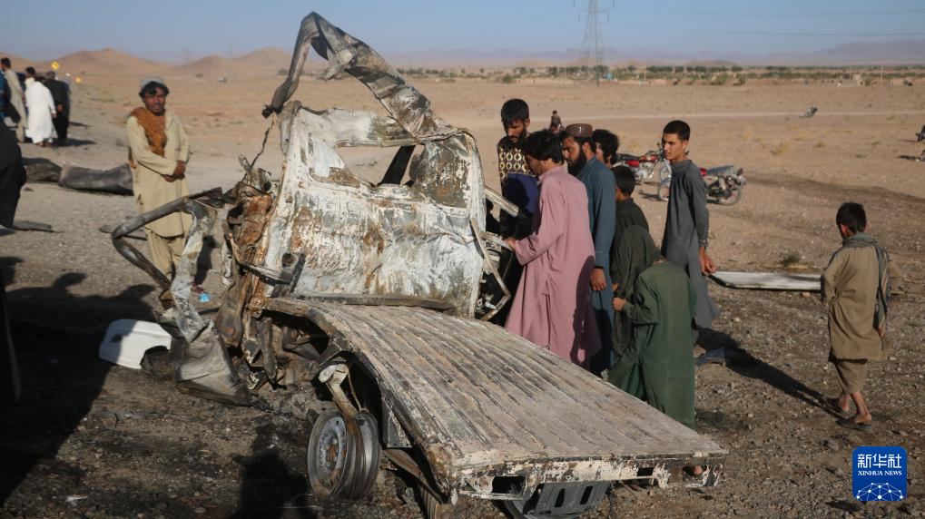 8月20日,在阿富汗西部赫拉特省,人们聚集在车辆残骸附近。