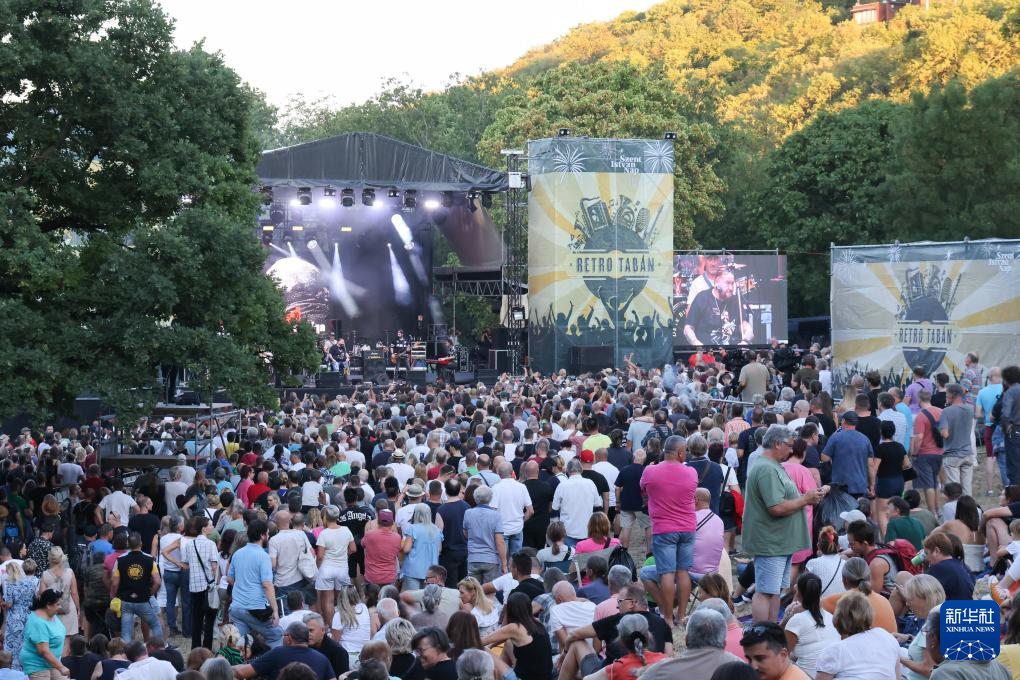 8月19日,在匈牙利布达佩斯,人们在公园欣赏音乐会。