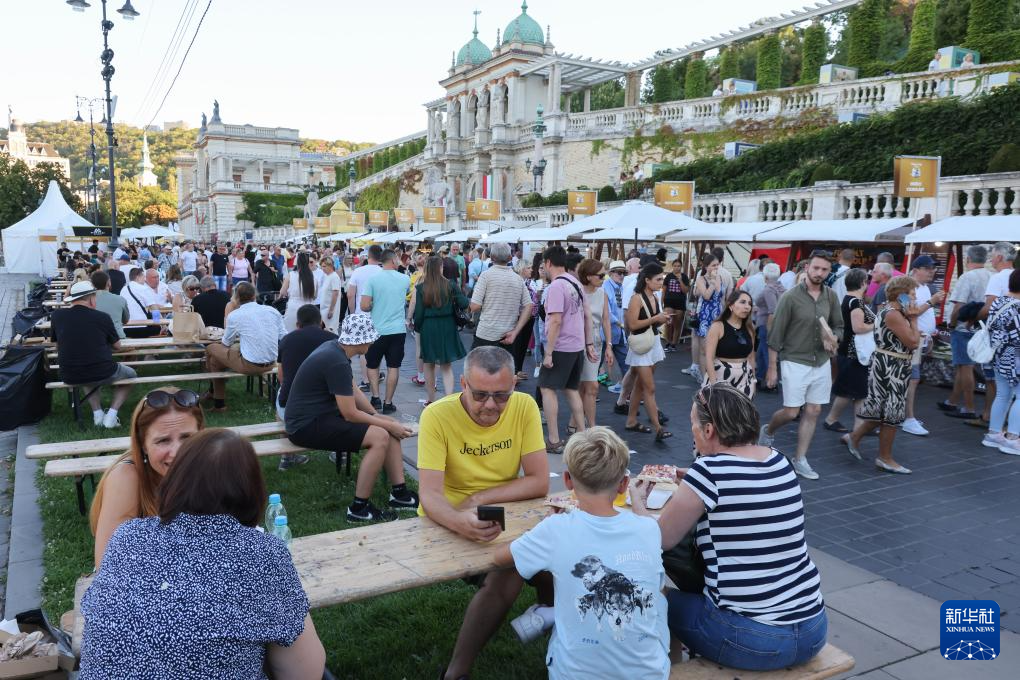 8月19日,在匈牙利布达佩斯,人们在美食节休闲。