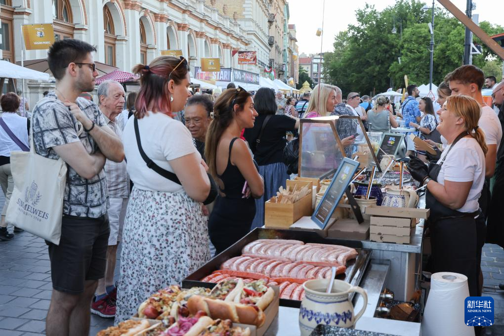 8月19日,在匈牙利布达佩斯,人们在美食节选购美食。