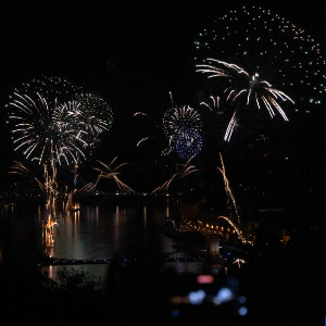 布达佩斯20日晚举行烟花秀,庆祝匈牙利国庆日。