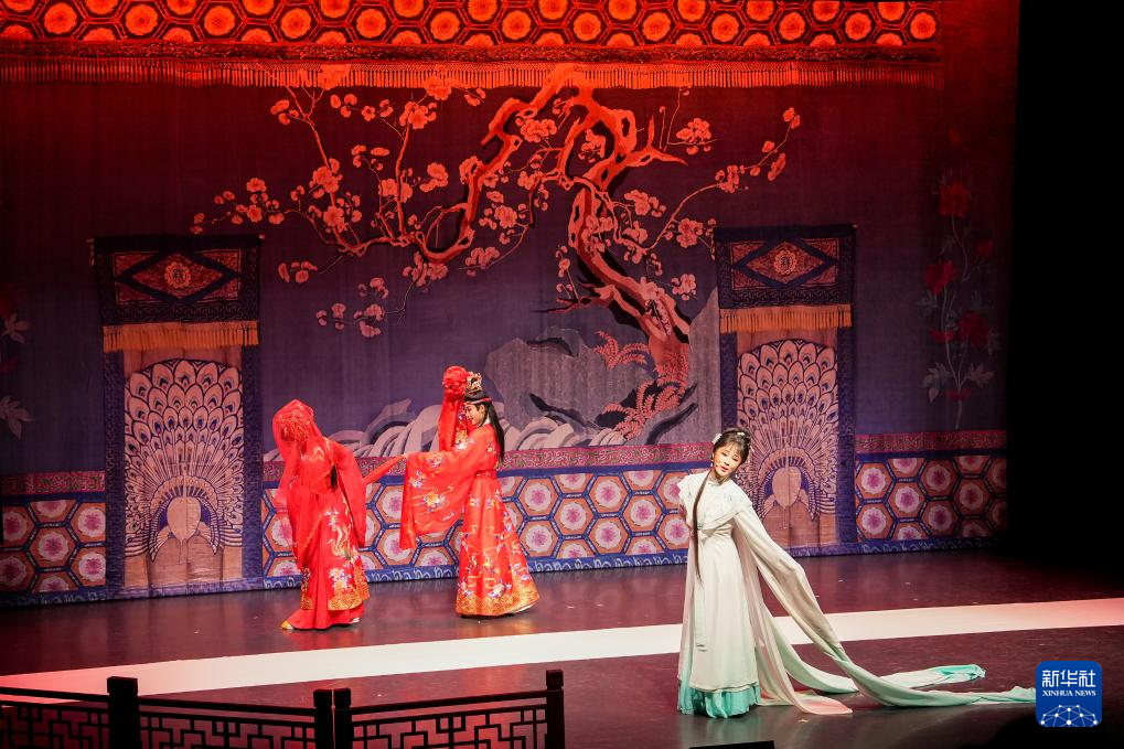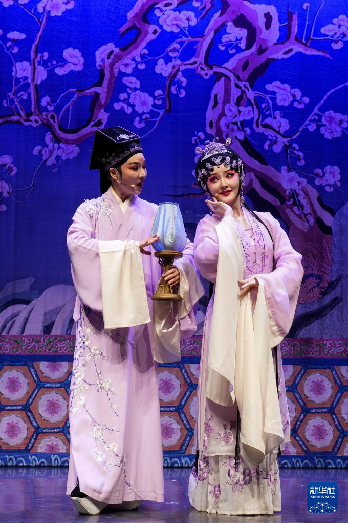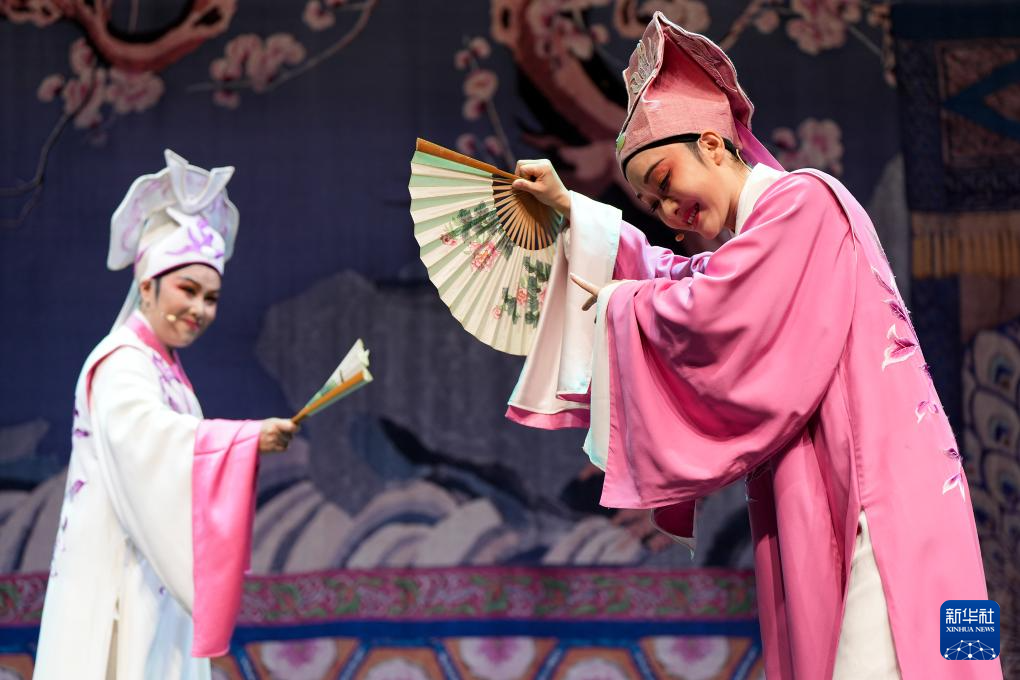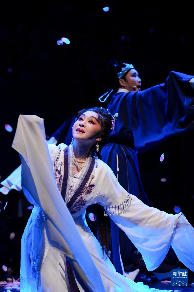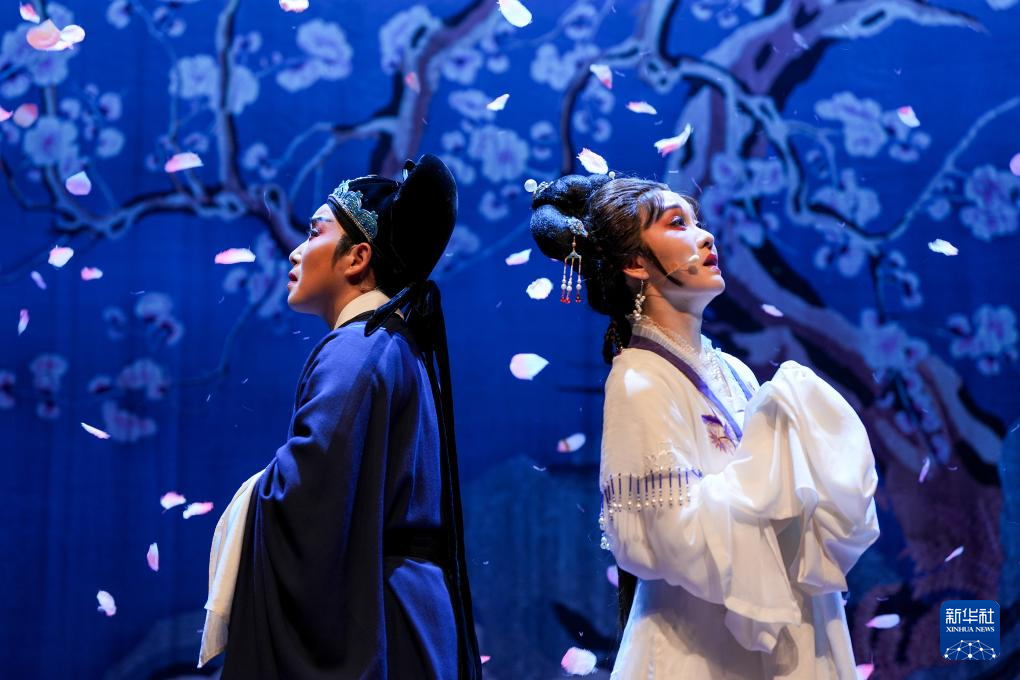 浙江小百花越剧院21日在英国伦敦为当地观众带来《爱情的花园》越剧折子戏专场,开启英国、德国巡演。剧院团队当日在伦敦萧剧院连演两场,吸引800余名观众到场观看。演出选取《梁祝·十八相送》《红楼梦·葬花吟》《牡丹亭·幽媾》《陆游与唐琬·题诗壁》等经典越剧折子戏片段,让海外观众近距离感受中国戏曲的艺术魅力与传统韵味。