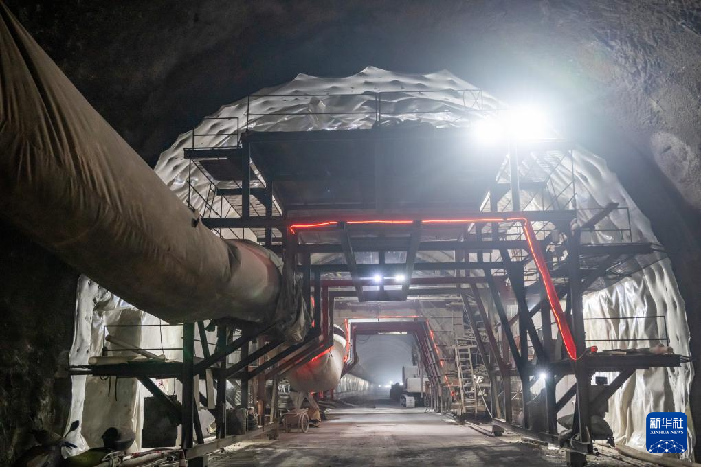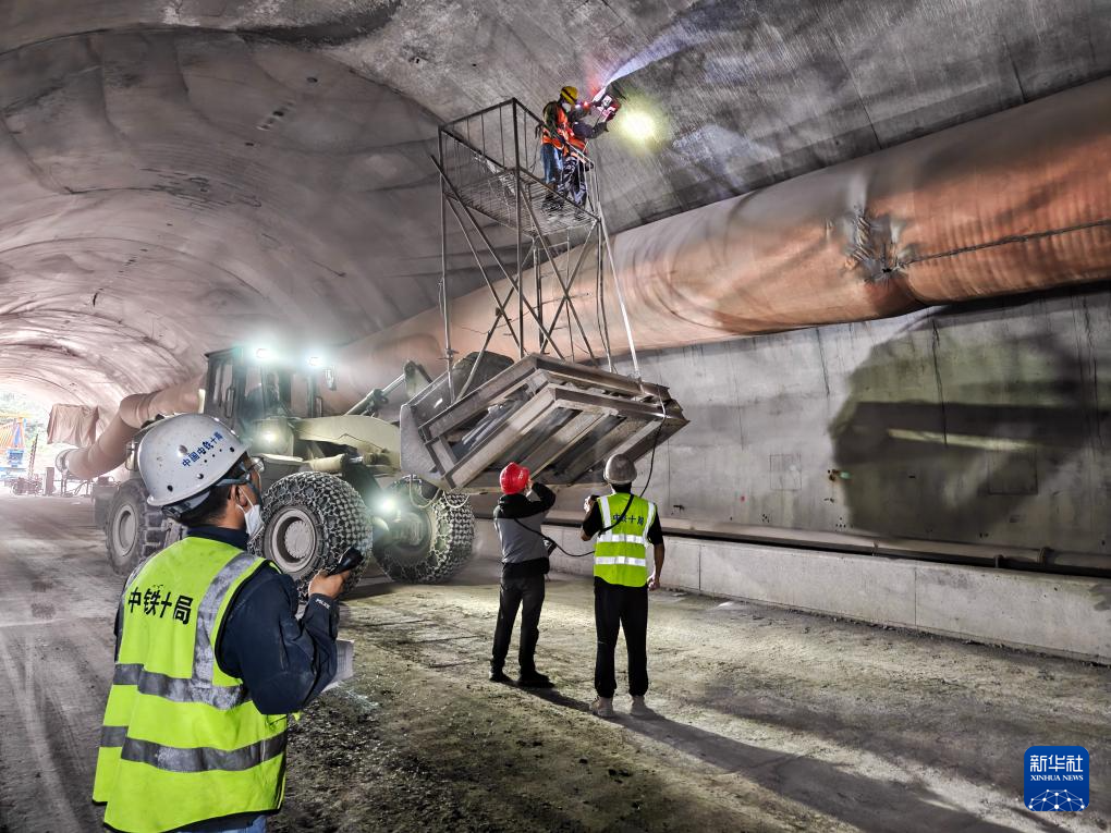 8月21日,工作人员在西昭高速洛古隧道里施工作业。
