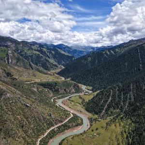 这是8月21日在青海省玉树藏族自治州囊谦县拍摄的江西林场(无人机照片)。