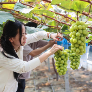 8月27日,游客在虹星桥镇长兴轩乐诗农业发展有限公司的葡萄大棚内采摘葡萄。该公司是一家集高科技农业种植、休闲观光、电商销售于一体的现代化农业企业, 7-8月主要产出阳光玫瑰葡萄,占地120亩,亩产3000斤。