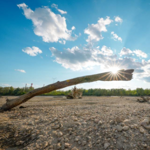 这是8月26日在波兰首都华沙拍摄的维斯图拉河河床上的枯木。