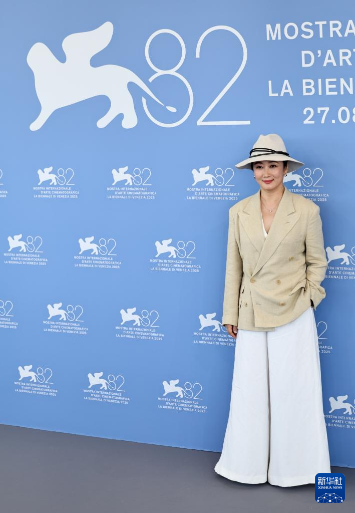 8月27日,在意大利威尼斯,第82届威尼斯电影节主竞赛单元评委、中国演员赵涛出席拍照式。