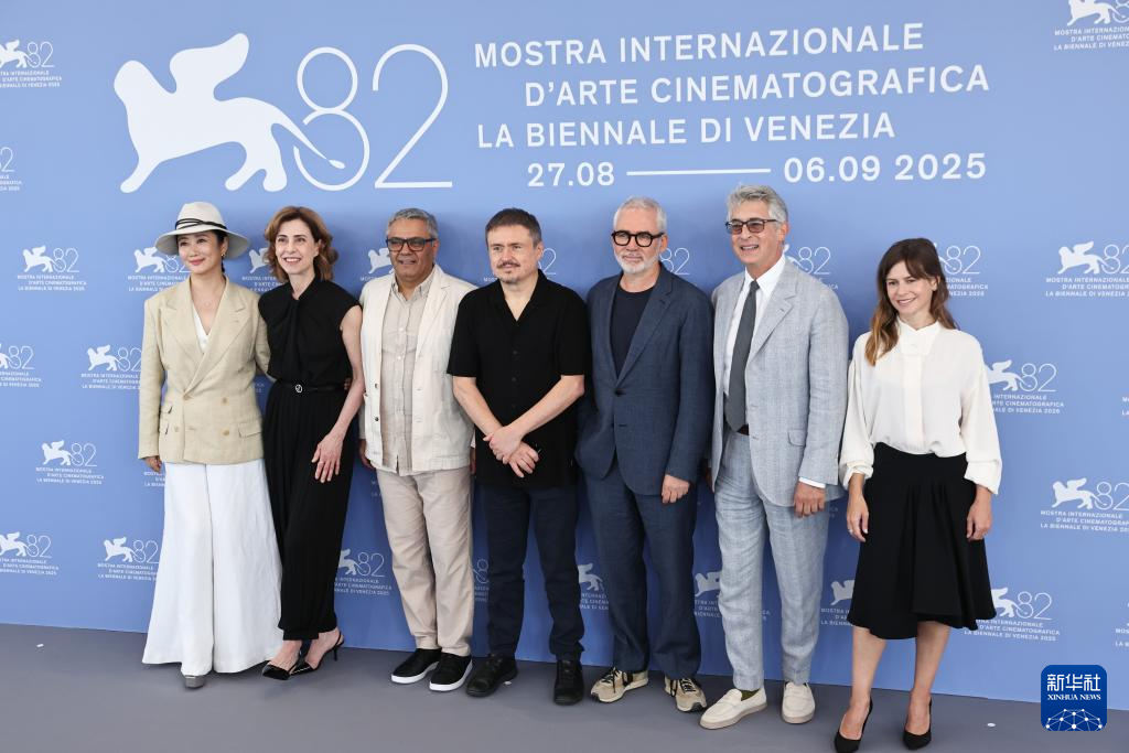 8月27日,在意大利威尼斯,第82届威尼斯电影节地平线单元评委出席拍照式。