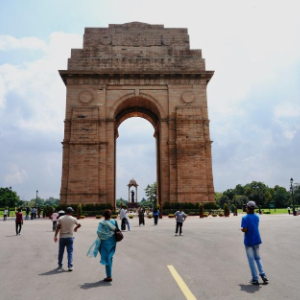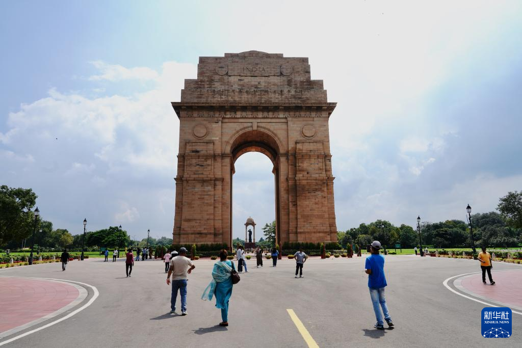 8月20日,人们在位于印度首都新德里的德里门前参观游览。