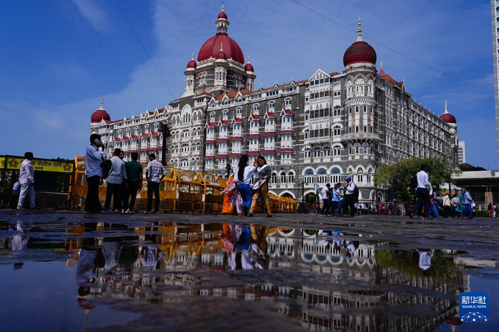 8月24日,人们从位于印度孟买的泰姬陵酒店附近走过。