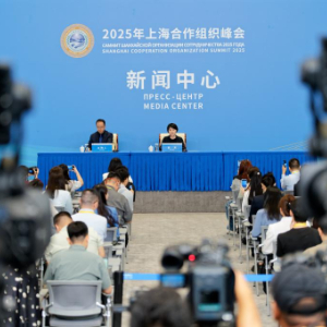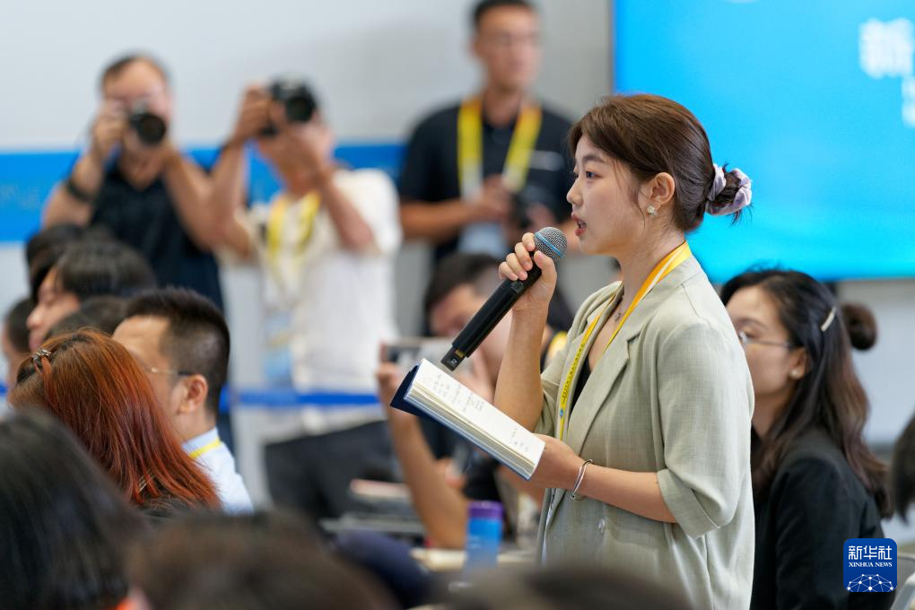 8月30日,在天津梅江国际会展中心,2025年上海合作组织峰会新闻中心举行生态环境部专场吹风会,生态环境部副部长郭芳介绍上合组织生态环境合作情况,并回答记者提问。这是记者在吹风会现场提问。