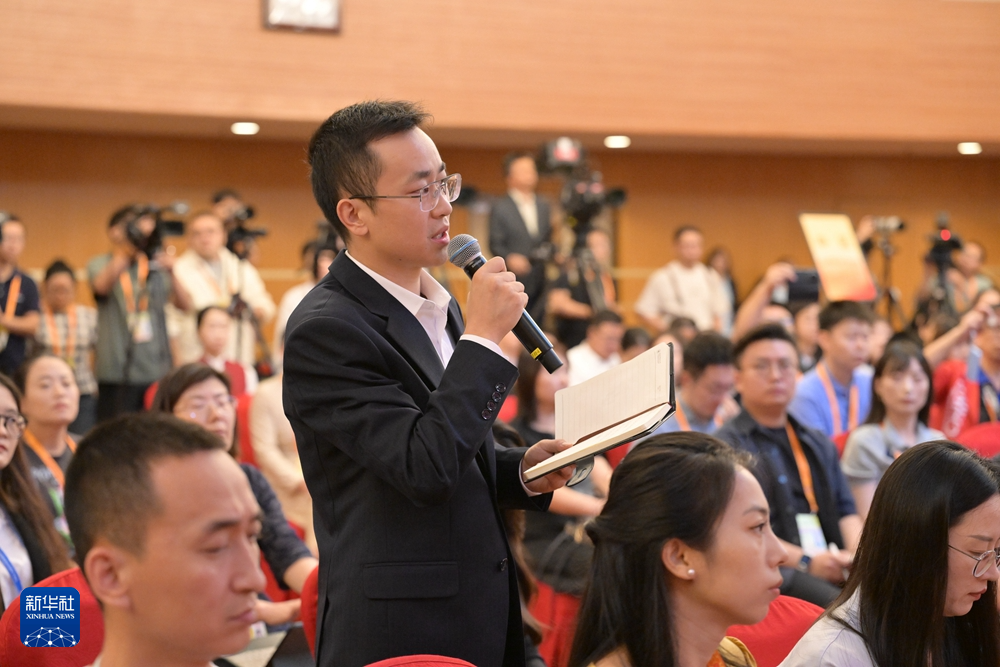 8月31日,中国人民抗日战争暨世界反法西斯战争胜利80周年纪念活动新闻中心在北京举办第三场记者招待会,退役军人事务部副部长马飞雄、国家文物局副局长孙德立介绍第四批国家级抗战纪念设施、遗址名录和著名抗日英烈、英雄群体名录,抗战纪念设施和抗战遗址、遗物修缮保护等方面情况,并回答记者提问。这是记者在现场提问。
