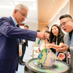 宴会前,各国贵宾被中国传统非遗技艺吸引,驻足观看、上手体验,嘉宾们亲切交流,气氛融洽,为平等、互鉴、对话、包容的文明观写下新的生动见证。