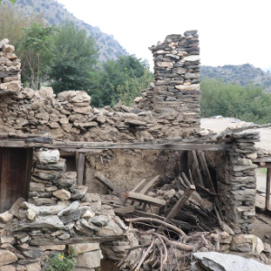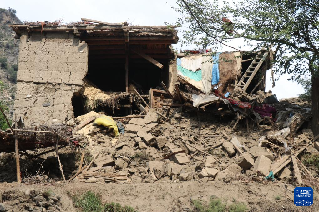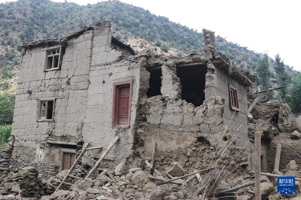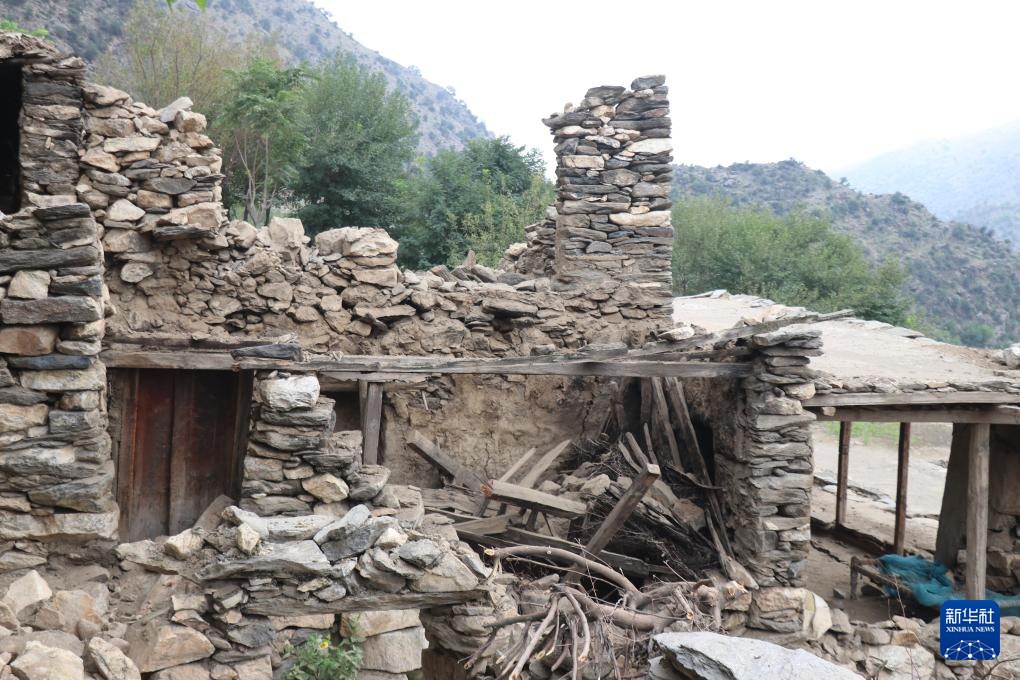 这是9月1日在阿富汗东部库纳尔省努尔加尔拍摄的在地震中损毁的房屋。