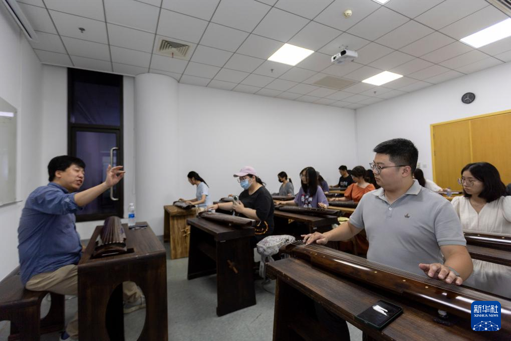 9月1日,在上海市群众艺术馆,古琴课程的学员在市民艺术夜校上课。