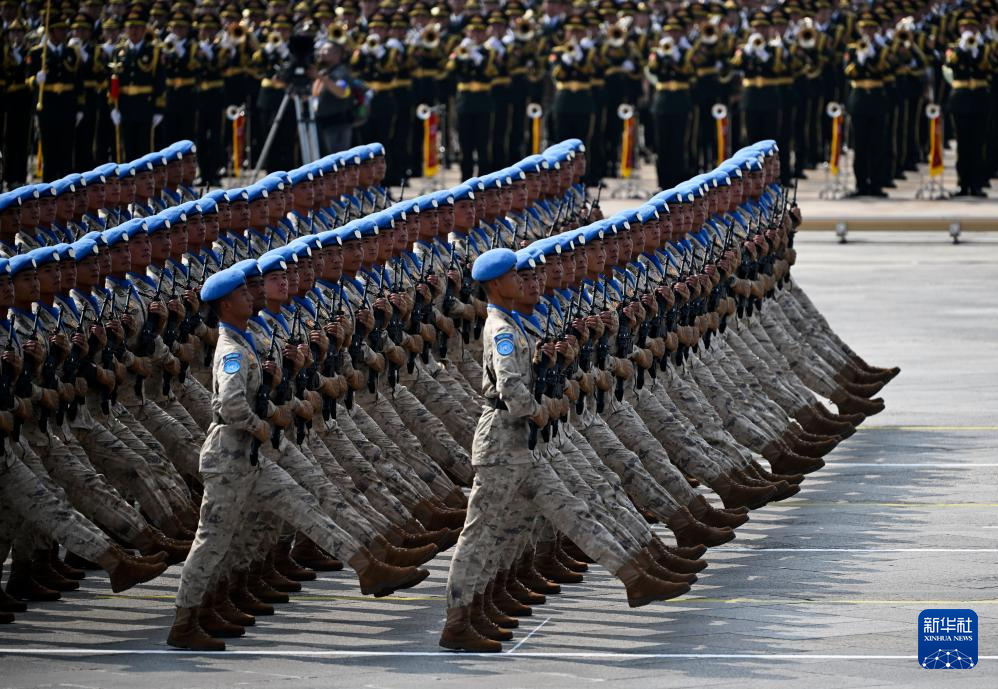 9月3日,纪念中国人民抗日战争暨世界反法西斯战争胜利80周年大会在北京隆重举行。这是维和部队方队接受检阅。