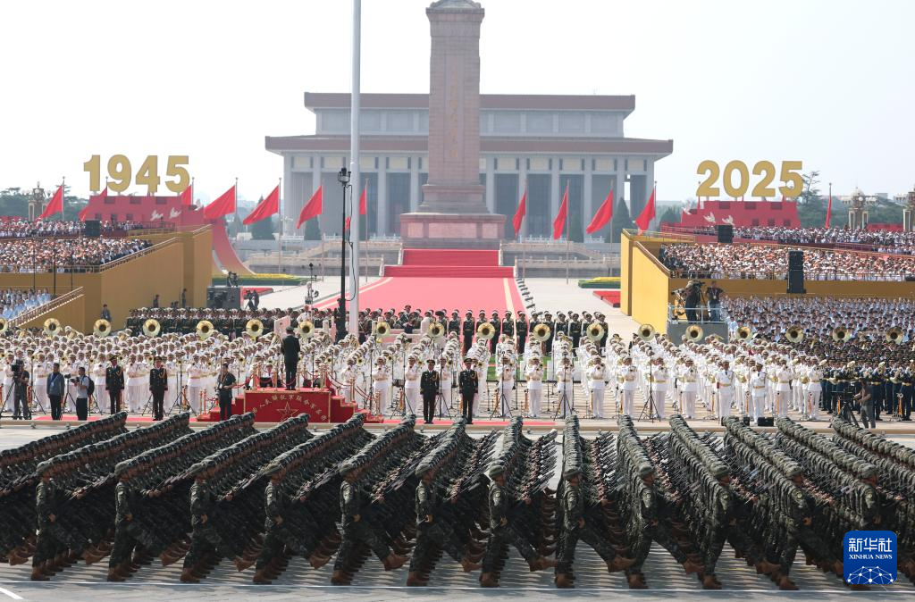 9月3日,纪念中国人民抗日战争暨世界反法西斯战争胜利80周年大会在北京隆重举行。这是中国人民解放军仪仗方队接受检阅。