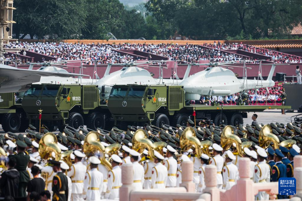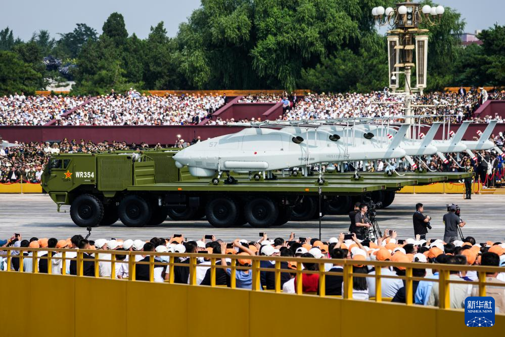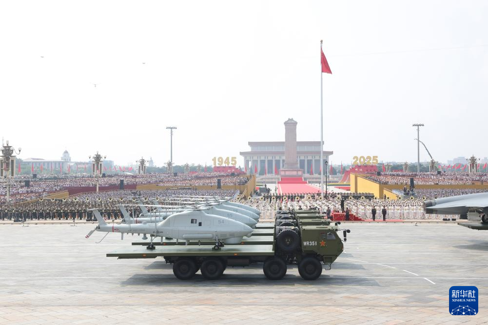 9月3日,纪念中国人民抗日战争暨世界反法西斯战争胜利80周年大会在北京隆重举行。这是空中无人作战方队接受检阅。