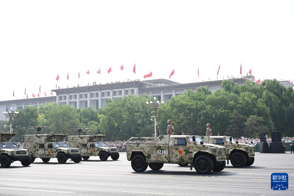 9月3日,纪念中国人民抗日战争暨世界反法西斯战争胜利80周年大会在北京隆重举行。这是装备保障方队接受检阅。