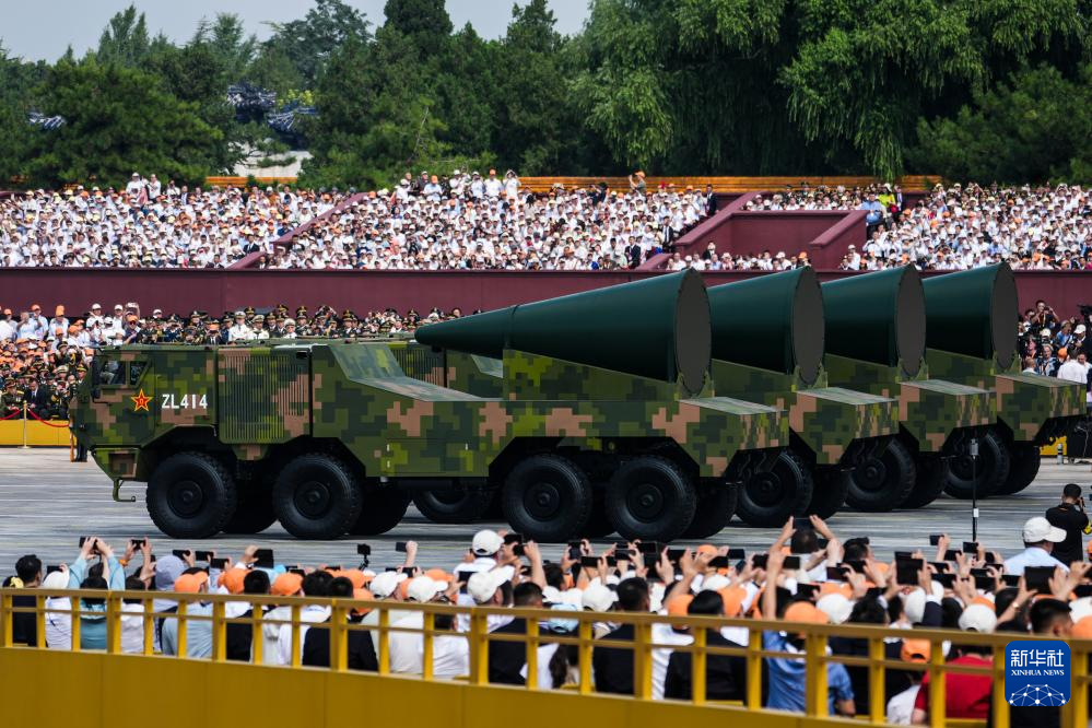 9月3日,纪念中国人民抗日战争暨世界反法西斯战争胜利80周年大会在北京隆重举行。这是核导弹第一方队接受检阅。