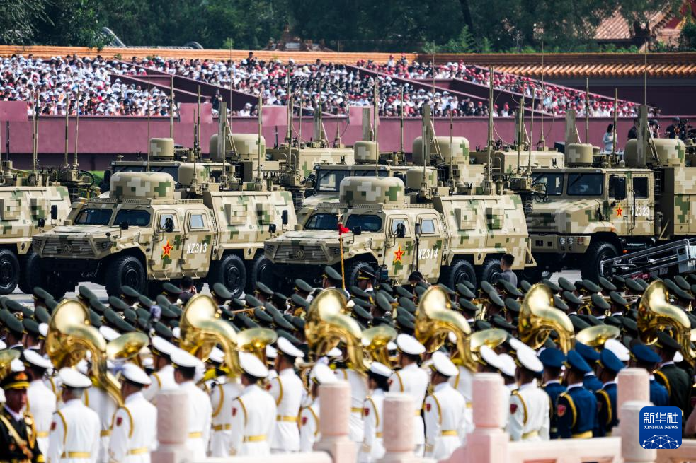 9月3日,纪念中国人民抗日战争暨世界反法西斯战争胜利80周年大会在北京隆重举行。这是信息支援方队接受检阅。