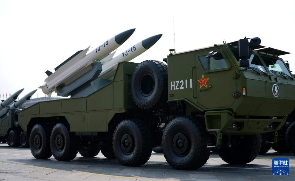 9月3日,纪念中国人民抗日战争暨世界反法西斯战争胜利80周年大会在北京隆重举行。这是反舰导弹方队接受检阅。