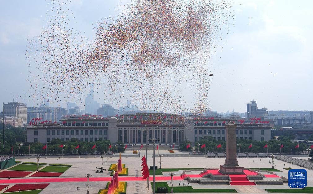 9月3日,纪念中国人民抗日战争暨世界反法西斯战争胜利80周年大会在北京隆重举行。这是纪念大会现场放飞气球。