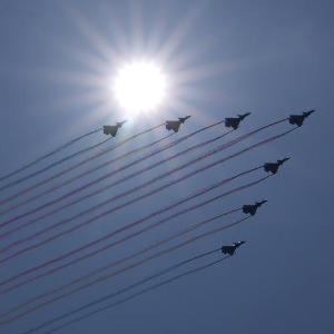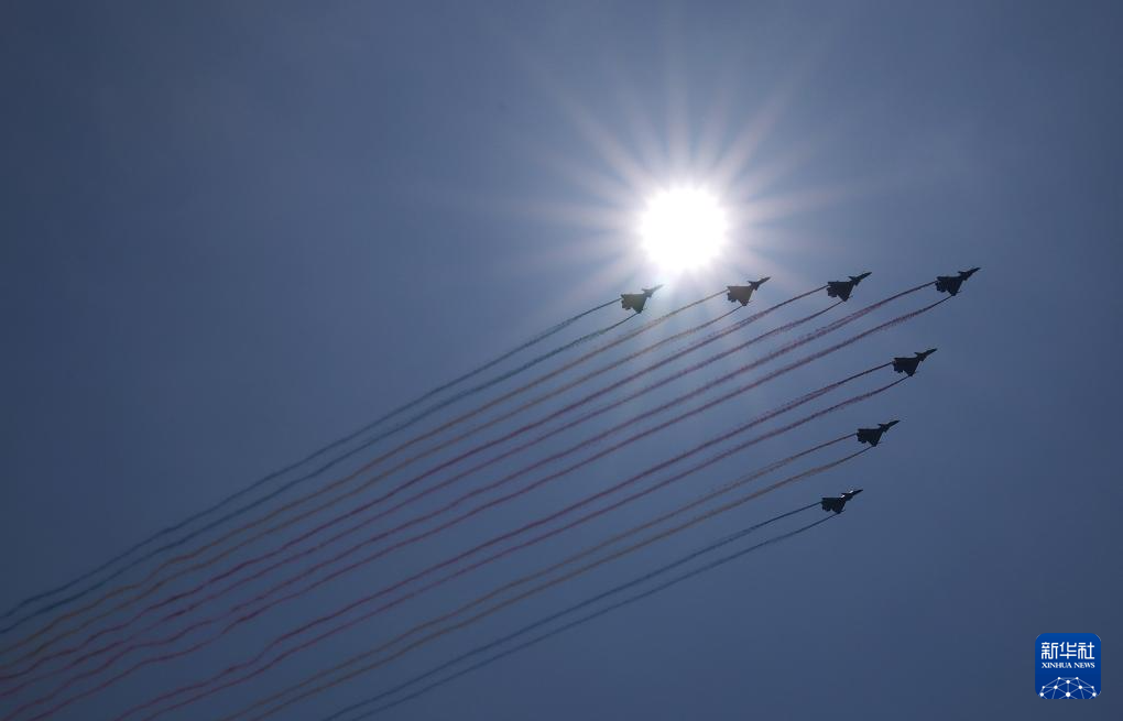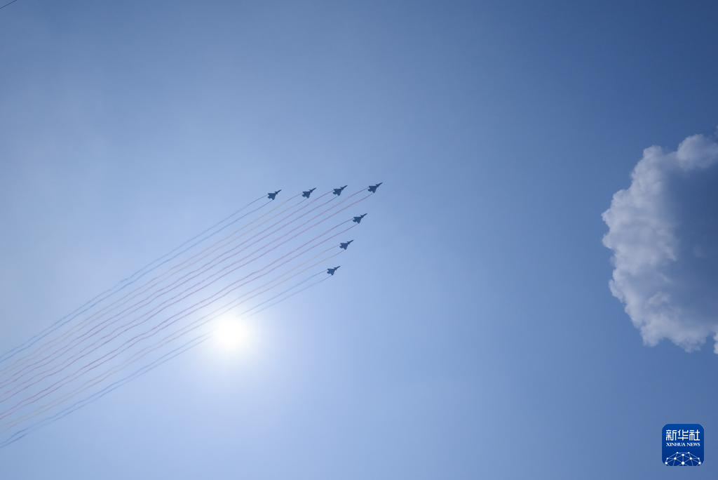 9月3日,纪念中国人民抗日战争暨世界反法西斯战争胜利80周年大会在北京隆重举行。这是教练机梯队接受检阅。