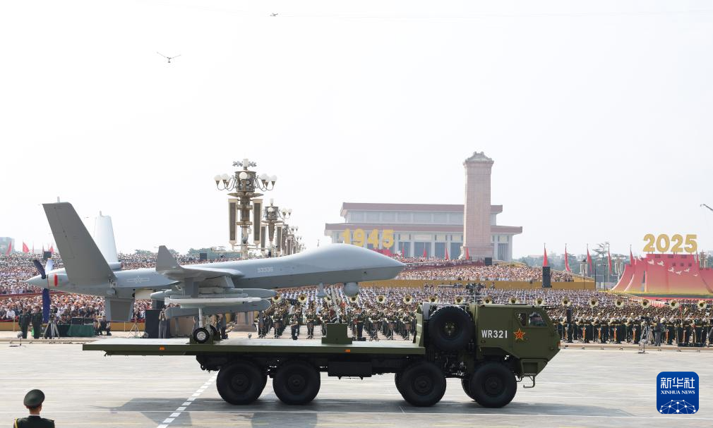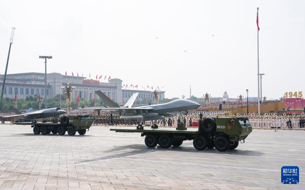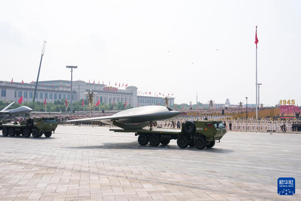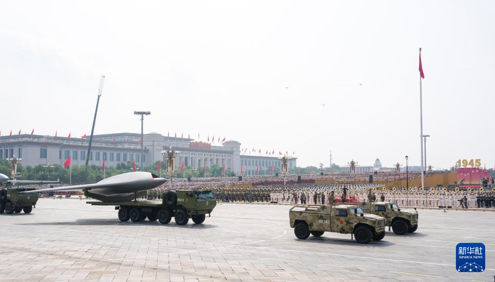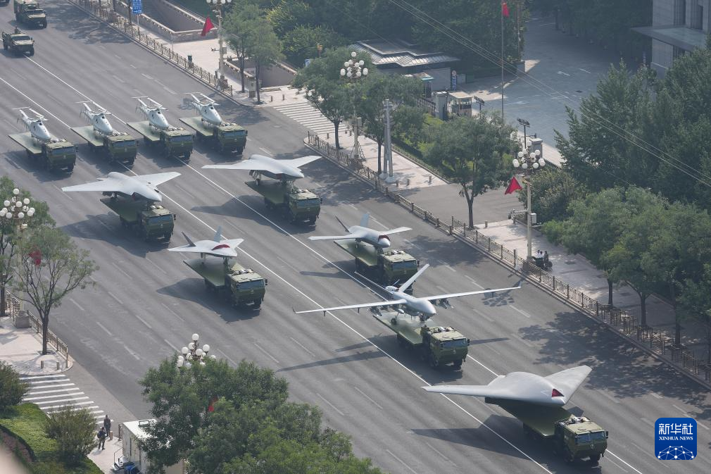 9月3日,纪念中国人民抗日战争暨世界反法西斯战争胜利80周年大会在北京隆重举行。这是空中无人作战方队通过天安门广场。