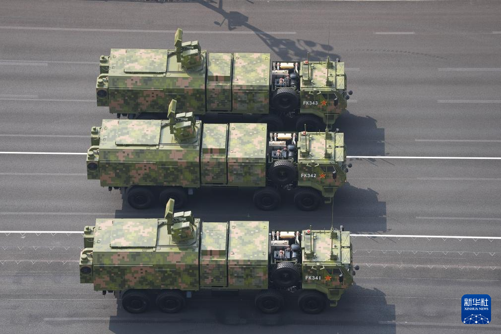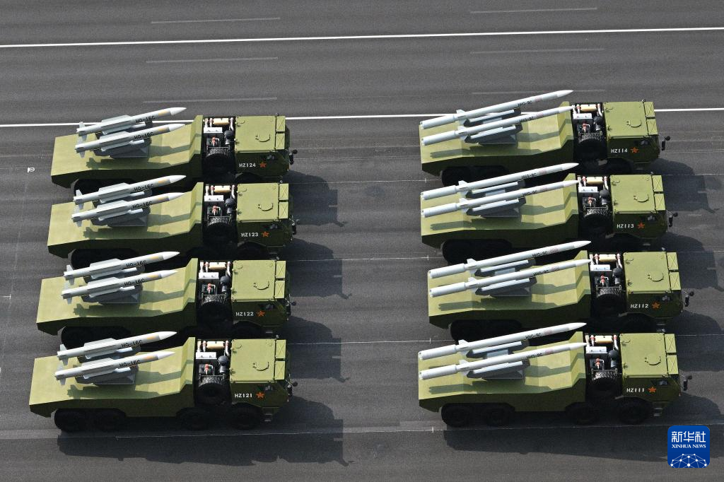 9月3日,纪念中国人民抗日战争暨世界反法西斯战争胜利80周年大会在北京隆重举行。这是舰载防空武器方队接受检阅。