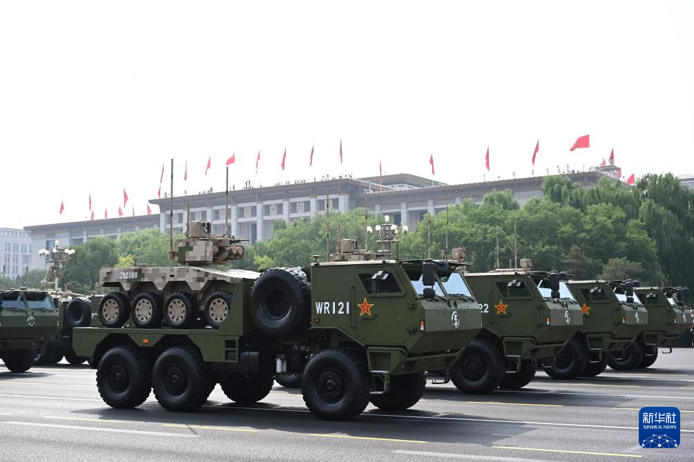 9月3日,纪念中国人民抗日战争暨世界反法西斯战争胜利80周年大会在北京隆重举行。这是陆上无人作战方队接受检阅。