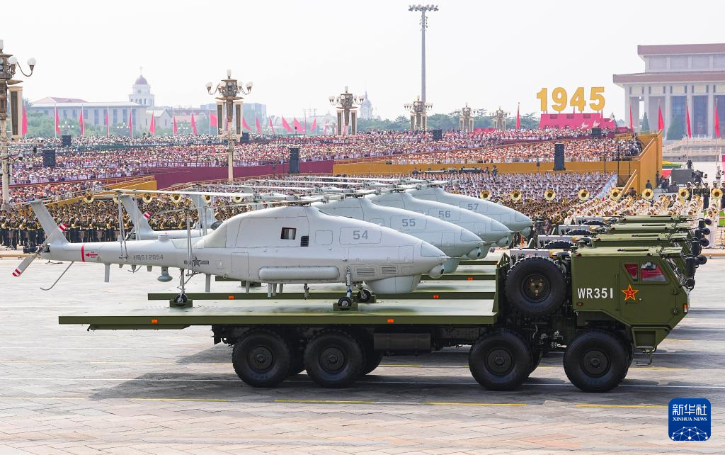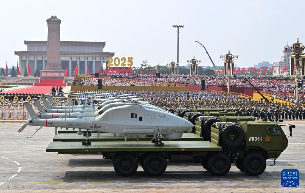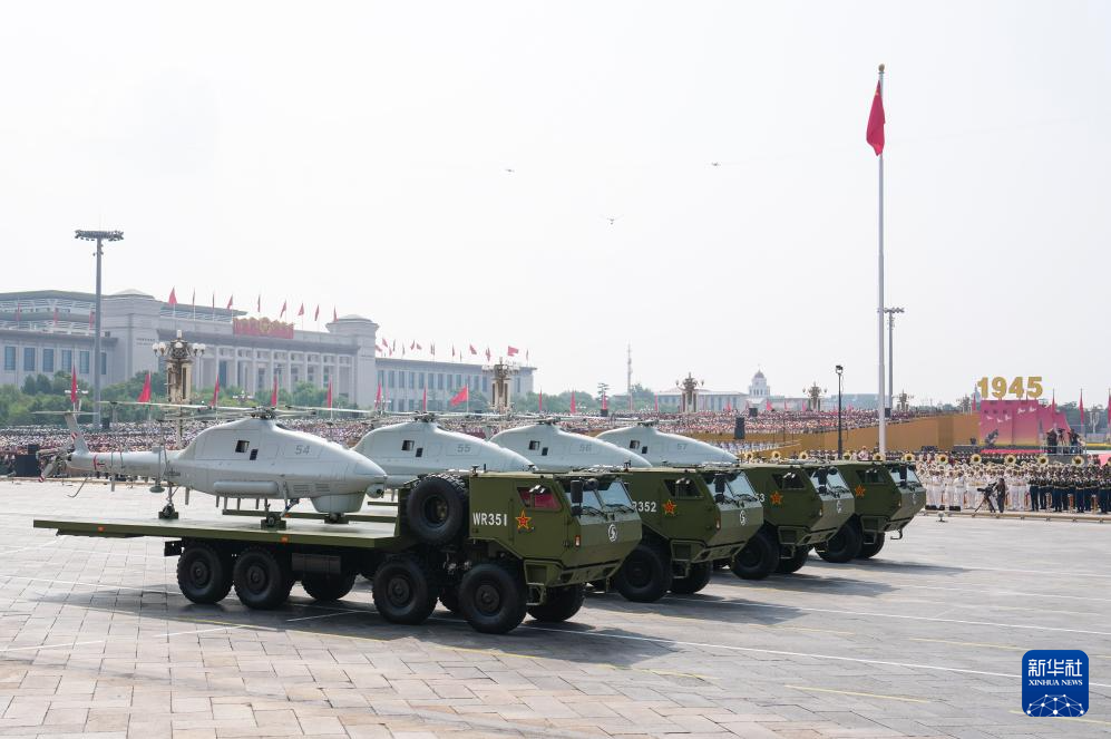 9月3日,纪念中国人民抗日战争暨世界反法西斯战争胜利80周年大会在北京隆重举行。这是空中无人作战方队接受检阅。
