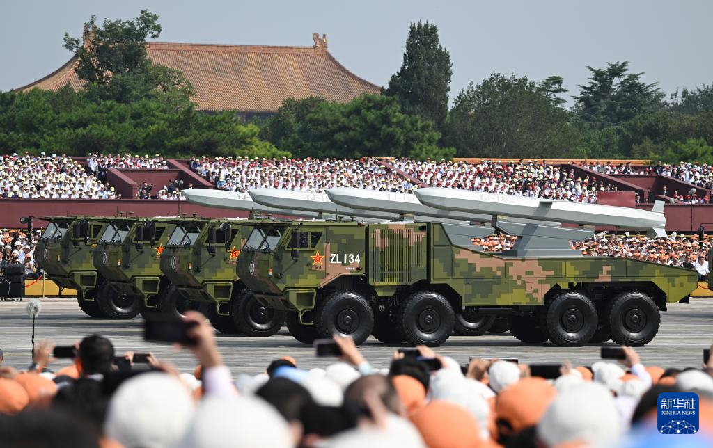 9月3日,纪念中国人民抗日战争暨世界反法西斯战争胜利80周年大会在北京隆重举行。这是巡航导弹方队通过天安门广场。