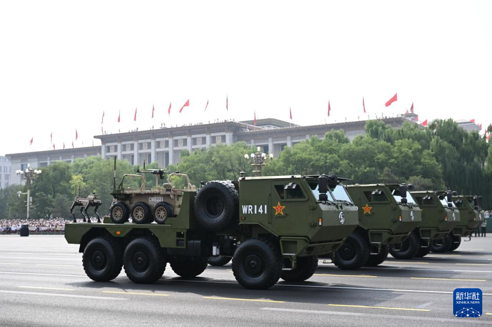 9月3日,纪念中国人民抗日战争暨世界反法西斯战争胜利80周年大会在北京隆重举行。这是陆上无人作战方队通过天安门广场。