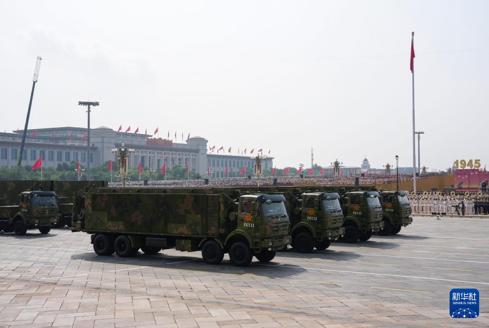 9月3日,纪念中国人民抗日战争暨世界反法西斯战争胜利80周年大会在北京隆重举行。这是电子对抗方队通过天安门广场。