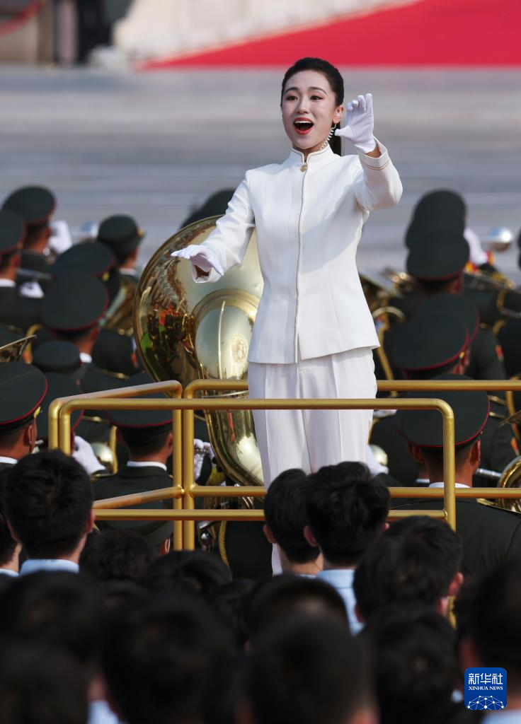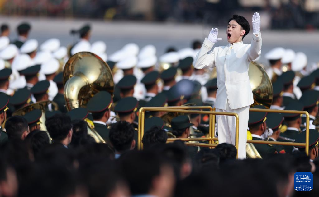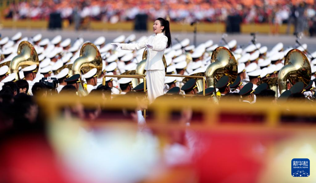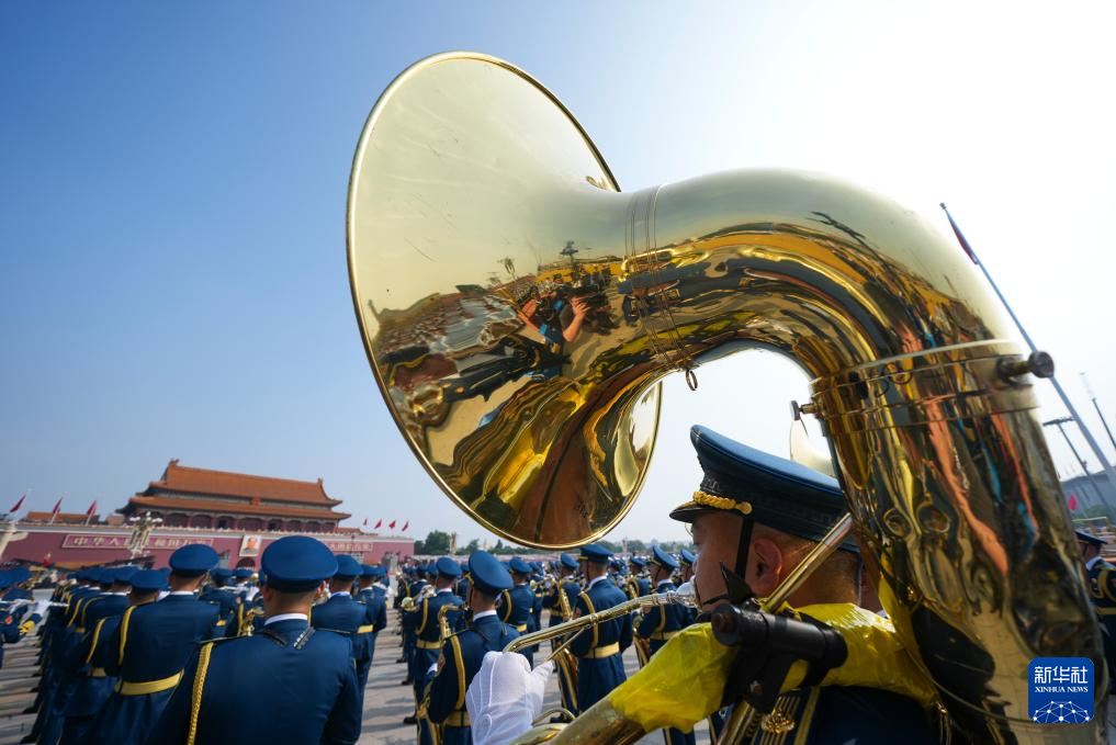 9月3日,纪念中国人民抗日战争暨世界反法西斯战争胜利80周年大会在北京隆重举行。这是中国人民解放军联合军乐团在演奏。