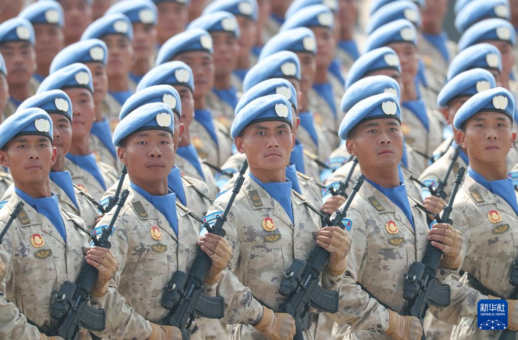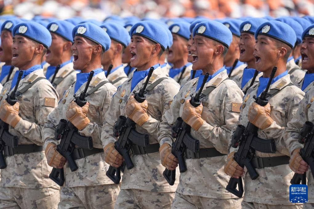 9月3日,纪念中国人民抗日战争暨世界反法西斯战争胜利80周年大会在北京隆重举行。这是维和部队方队接受检阅。