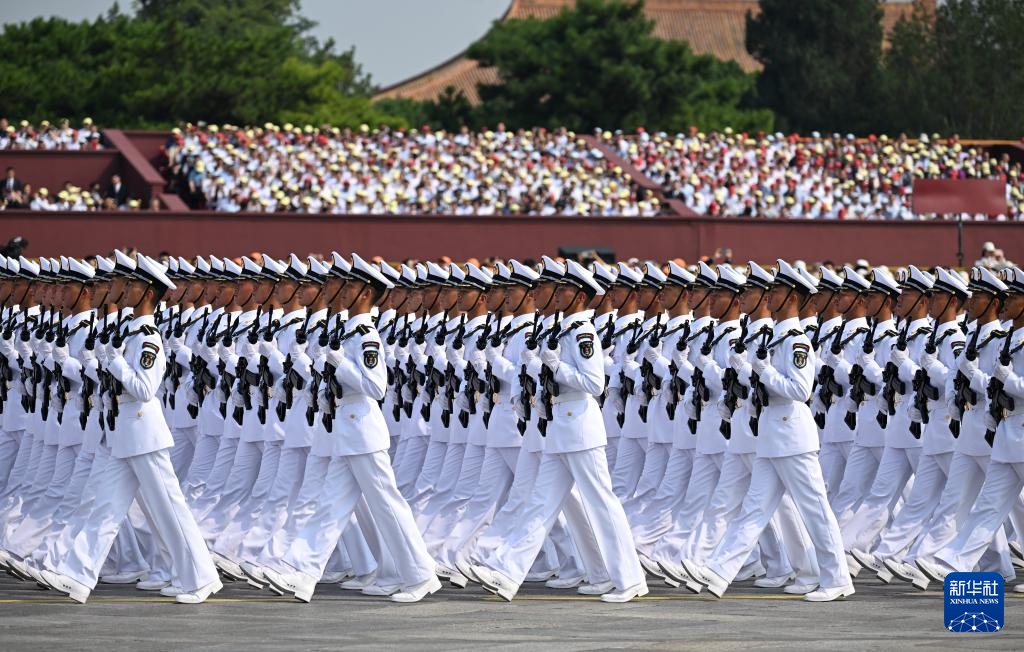 9月3日,纪念中国人民抗日战争暨世界反法西斯战争胜利80周年大会在北京隆重举行。这是海军方队通过天安门广场。